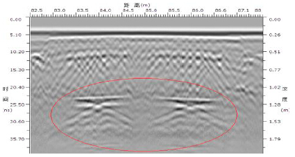 鋼筋混凝土板下方兩個砌筑管溝的雷達圖像